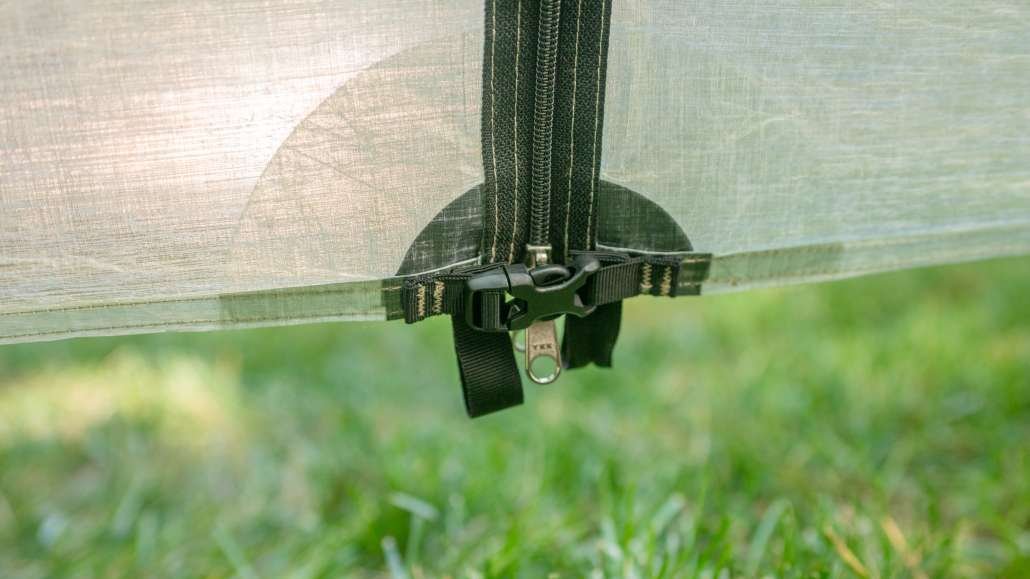 - End-of-zipper buckles for extra door security in windy conditions