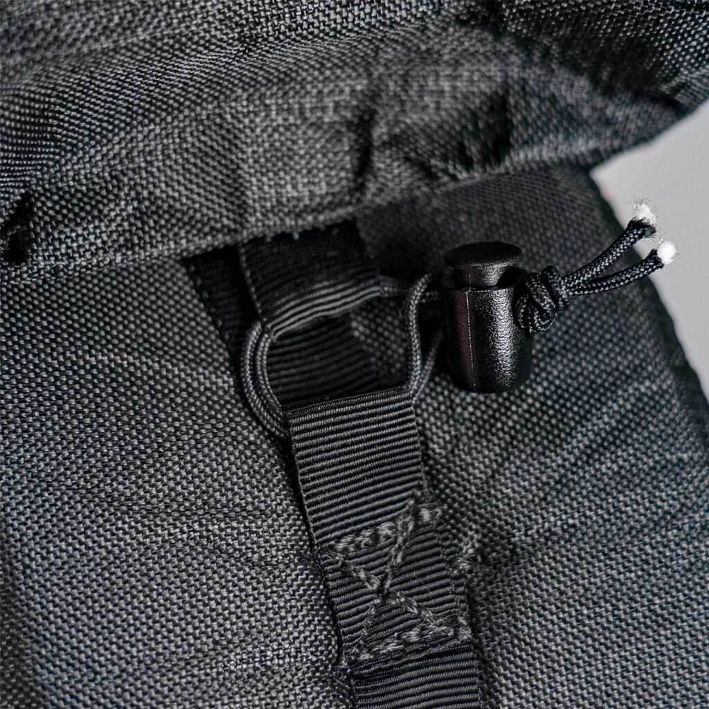 - Vrecko sa upína na bedrový pás batoha, elastický pás sa prevlečie cez bedrový popruh a zaistí sa po bokoch pomocou slučiek (pozri video). Pasujú na batohy od Zpacks s polstrovaným pásom, ale môžu sa použiť aj na iné batohy, ktoré majú retiazku alebo upevňovacie body na pripnutie.